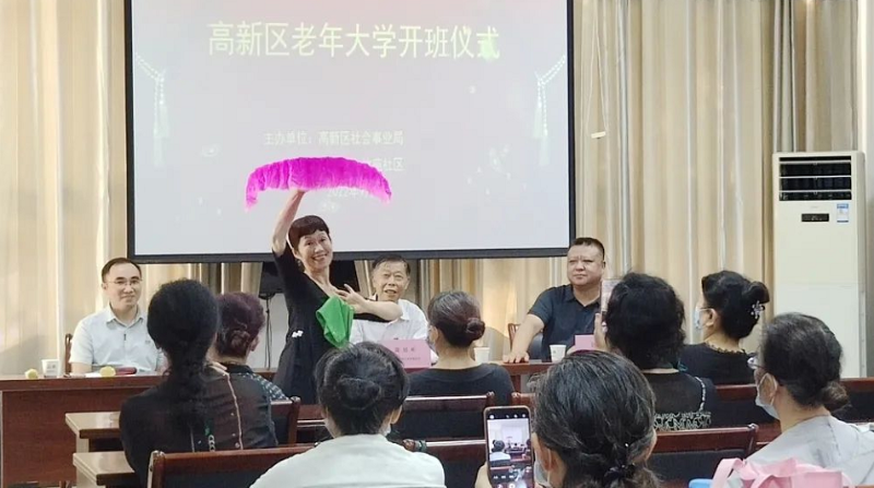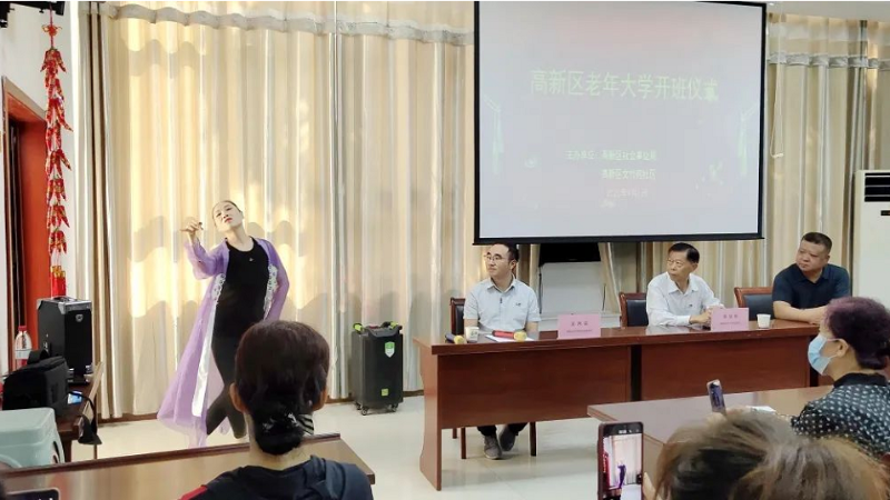 开班仪式上,区社会事业局有关负责人致辞、区老年大学名誉校长发言。他说:办老年大学是党和政府对老年朋友的关怀,这是一件为民服务的好事、实事,我们要把好事办好。老年大学是我们共同的家园,要把老年大学建成一个温馨、和谐、文明、繁荣的家园,让教与学共同成长,让大家共同进步!